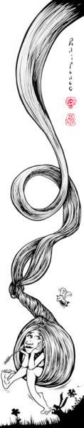 Raiponce se prélasse dans un jardin en se servant de ses cheveux comme d'une balançoire. Elle est nu et un lapin s'apprête à lui mordre les orteils de ses pieds nus, alors qu'elle est divertie par un ange-cochon volant au dessus d'elle. Elle attend désespérément le prince charmant qui ne vient pas. Raiponce (en allemand Rapunzel) est un conte populaire allemand qui figure parmi ceux recueillis par les frères Grimm dans le premier volume de Contes de l'enfance et du foyer