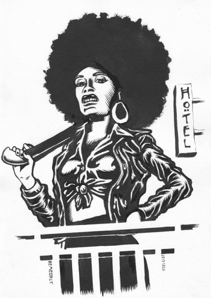 Deuxième épisode de la saison 5 d'American horror story: Hotel. Angela Bassett : Ramona Royale, une femme sexy, qui entretient une très forte relation avec Elizabeth. C'est également une fabuleuse actrice. Elle ne vit pas à l'hôtel mais le visite très souvent. Ici Ramona Royale avec une coupe de cheveux afro et un fusil à pompe