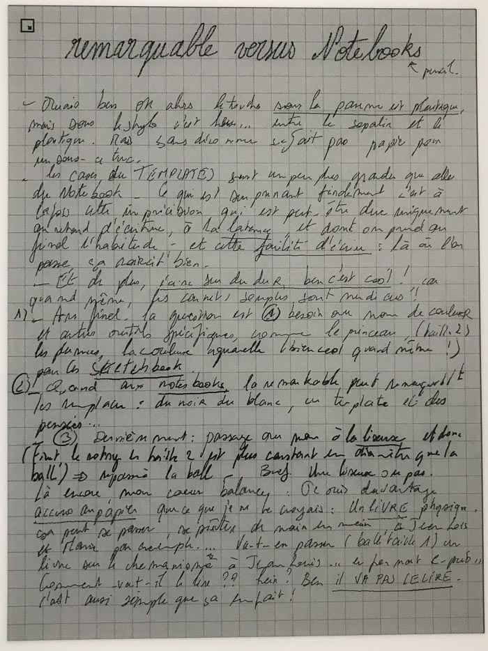 Les points positifs prennent toute leur ampleur en comparant la remarkable paper à un ipad par ex., mais pas comparé à du papier…