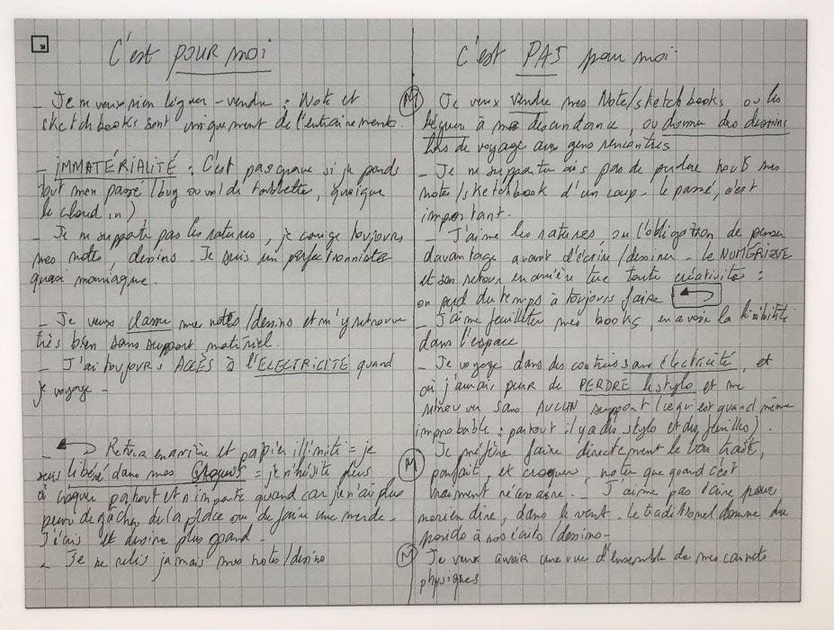 - je suis un minimaliste / nomade de l'extrême mais veux quand même tout garder. Alternative : certains carnets comme les modNotebooks sont vendus numérisation et destruction/restitution comprise dans le prix d'achat…