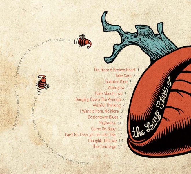 Par S. BOUILLET, 23 février, 2015 Publié dans Graphisme Créé avec Encre de Chine Pinceau Photoshop (Adobe) Indesign (Adobe) CD CD The Resophonics - "The Long Story Of" Voir plus de Arbre Cheveux Coeur Humain Végétal Musique Rock' n' roll Couverture (CD) Illustration