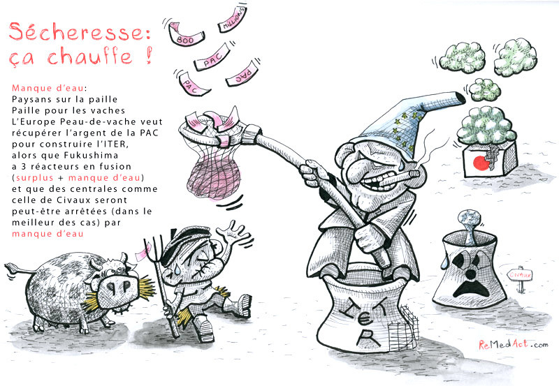 Sécheresse en France: paille mangée par les vaches; ITER et nucléaire à Civaux