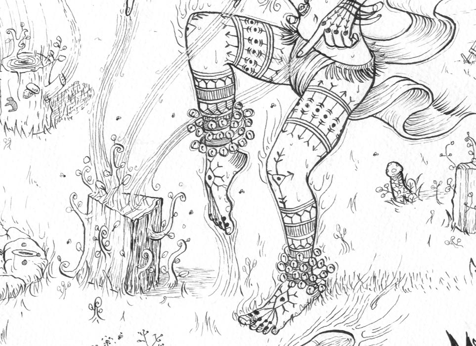 Puis elle plante des bûches à même l'herbe, avant de leur redonner spirituellement vie et de les faire pousser.