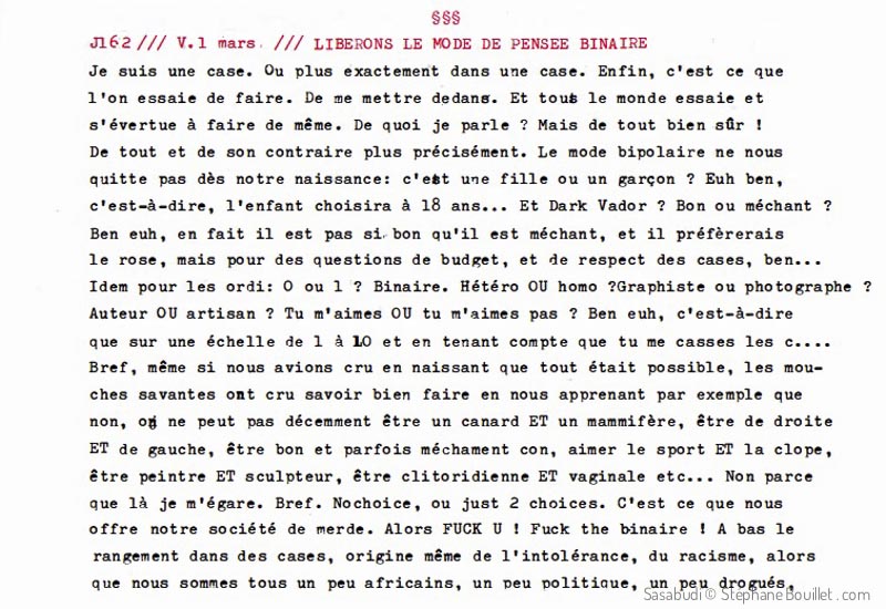 Soyez le premier à laisser votre avis sur “J162 /// Pensée binaire : Fuck U !”