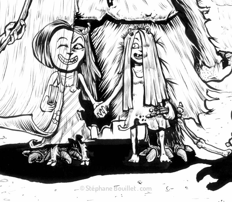 ILLUSTRATION : un scientifique recouvre d'une affiche mensongère tout ce qu'il ne peut pas expliquer: monstres et compagnie… TEXTE : À un moment, dans le "Tropique du cancer", Miller écrit "le papier peint avec lequel les hommes de science ont recouvert la réalité, tombe en lambeaux". C'est une image que j'ai trouvée excellente, et une représentation de la réalité également très intéressante, dans un monde où l'on ne croit plus ce que l'on voit, mais où l'on croit ce que seulement la science peut prouver, avec ses petit bras et sa cervelle de moineau. 1+1 = 2. Ça, c'est dit. Sauf que dans des conditions un peu spéciales et dans certains contextes, ça peut faire trois. Et c'est bien ça le problème. Tout est faux, mais peut être vrai dans "un certain contexte. Dans le monde actuel, le contexte est que la science EST le contexte ! Toute vérité en dehors de ce que la science a scientifiquement prouvé est fausse ! Ou du moins on s'en fout, ou presque ! Et le pire, c'est qu'il n'y a pas plus têtu qu'un scientifique qui s'est autoproclamé détenteur de LA vérité. Alors qu'il n'est que détenteur d'UNE vérité ! La sienne ! Pourtant loin d'être ignorant, dans l'absolu, le scientifique choisit sciemment d'ignorer tout ce qui peut être dit par des personnes qui ne serait pas de la même religion et ne se prosterneraient pas devant le même dieu qu'eux: la science ! Oups, pardon, je voulais dire, la Science ! Ils se retrouvent donc entre eux autour d'un verre de champomy avant d'aller coller des affiches scientifiques sur la réalité non scientifique. Mais heureusement, la pluie du temps lave les cervelles et décolle les papiers de ces extrémistes de la pensée, et on commence à croire aux possibles, à croire que d'autres vérités d'autres papiers peints existent, comme en atteste l'utilisation de plus en plus répandue de l'homéopathie, l'acupuncture, l'hypnose etc. Oui je sais je pourrais parler de plein d'autres trucs mais bon. Eh oui