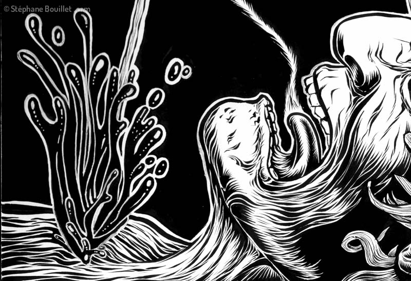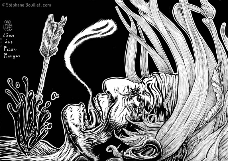 Imaginons qu'on soit mort. Ça y est. C'est fini. Ça s'est fini dans un grand schlop. Et après ? ? Ben après, ça dépend. Et ça dépasse pas. Pour les Peaux-Rouges, dixit Jean Pictet dans "Les fils du Grand-Esprit", l'âme s'échappe par la bouche. Oui. OK. Mais c'est aussi là tout le problème: voilà, si on on meurt par strangulation où si on perd son scalp, l'âme n'est pas libérée et reste donc dans le corps. Eh ouais. Je ne vous le fait pas dire: c'est la mouise. Et pas le Moïse. Si seulement. Non: la merde, parce qu'après ça, ben ça risque de durer un moment c't'affaire là. Alors pour être sûr(e), ben garder votre scalp bien attaché, et tachez de respirer un grand coup juste quand vous mourrez. Parce qu'on sait jamais. On peut même s’entraîner avec une main sur la tête: Inspire… Expire… Et ne pas oublier de garder la bouche grande ouverte… au cas où…