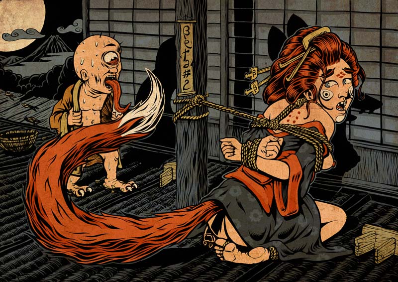 Kitsune et Hitotsume kozo yokai pour la couverture du fanzine Beta #2
