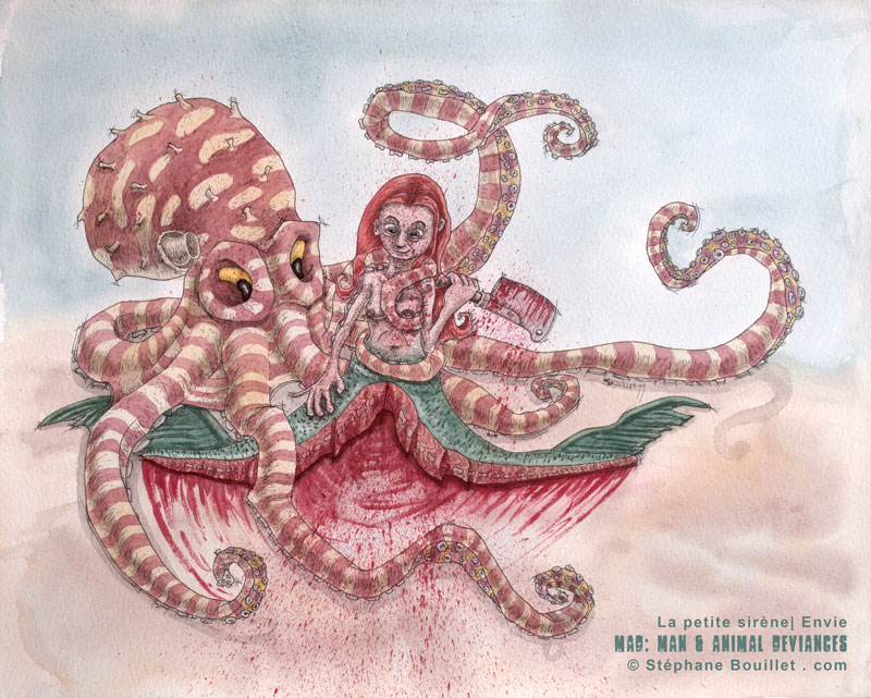 La petite sirène a une folle envie de devenir humaine pour aller draguer un simple humain. Condition sine qua none: se tailler des jambes. Le poulpe fait allusion à Ursula, la méchante dans l'adaptation de Disney.