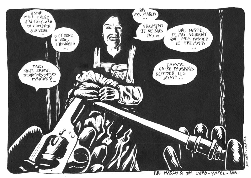 Deuxième épisode de la saison 5 d'American horror story: Hotel. Mr March demande à sa femme de ménage si elle préfère mourir la première, en lui donnant le choix du pistolet ou du couteau pourleur suicide collectif.