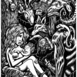 La chimère naissante, dessin publié dans le 3ème fanzine des Éditions Terriennes, "Dans Ta Face", sur des couleurs imposées.