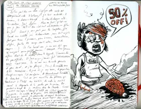 Sketchbook analytique. Association de textes et de dessins les illustrant.