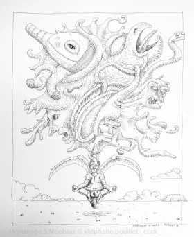 Illustrations de Jean Giraud alias Moebius (sauf la première: hommage à Moebius © Stéphane Bouillet)