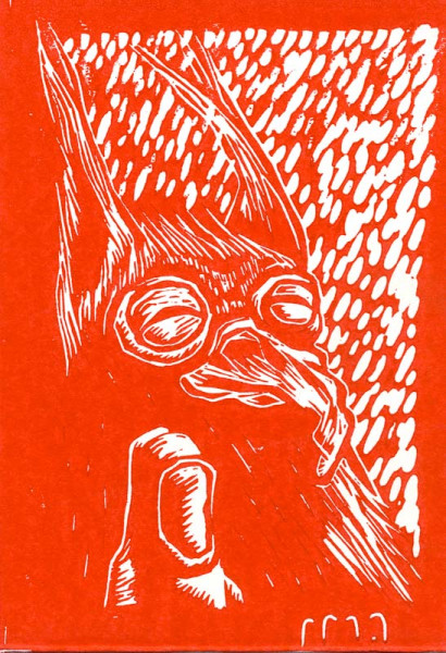 Ici, l'ange porte des ailes, une auréole et est retournée. l'animal est un oiseau géant