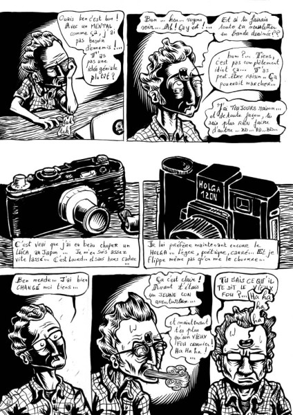 Il se rend compte qu'il ne fait plus que ça (de la BD), et qu'il a quasiment laissé tombé le foutugraphie (en plus de véto et du graphisme) et préfère notamment le Holga 6x6 au vieux Leica DII trop lourd et pas assez poétique.