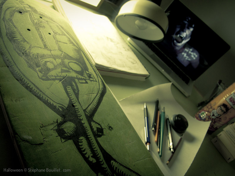 Exposition d'illustrations sur le thème d'Halloween, entre sorcières, vampires et loup-garous, toujours dans un style humoristique et caustique propre à ReMedAct.
