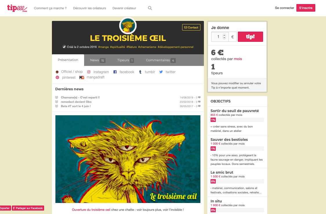 J'ai actualisé ma page Tipeee qui s'appelle dorénavant Le Troisième œil.