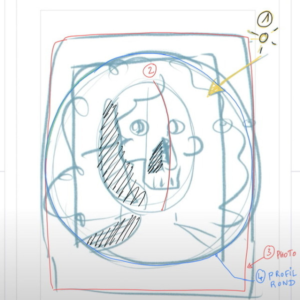 Avant même de commencer, pensez à bien adapter ce futur portrait à vous-même, puisque c'est votre profil, à la fois sur le forme bien sûr (vos outils comme du crayon ou de l'encre, ou de l'aquarelle etc et votre style), mais aussi sur le fond : avoir un style, c'est bien, mais au fond, que voulez-vous dire ? Quel est votre message ? Le but de votre art ?