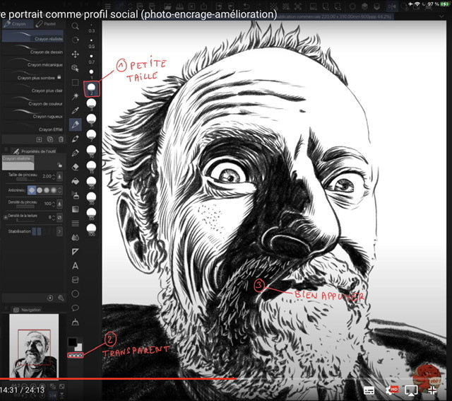 Tout au long de l'encrage, vérifier la vignette dans la fenêtre de navigation pour voir si votre portrait en petit fonctionne.