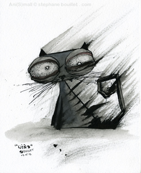 Chat sauvage exposé au vent, ou qui vient d'aterrir.