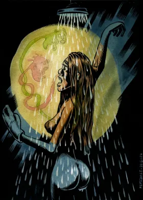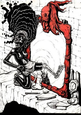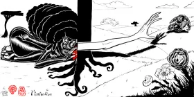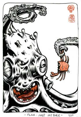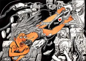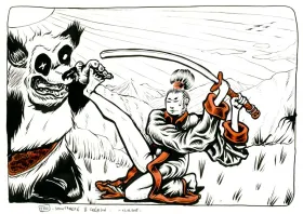 Illustration originale A3 "Le doigt de la mort - Vie et mort ou les frangins siamois"