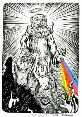 Illustration originale A4 "La valse des pourquoi ou l'origine du tout"