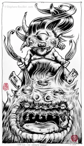 Illustration originale A4 "Le monstre n'était qu'un bébé"