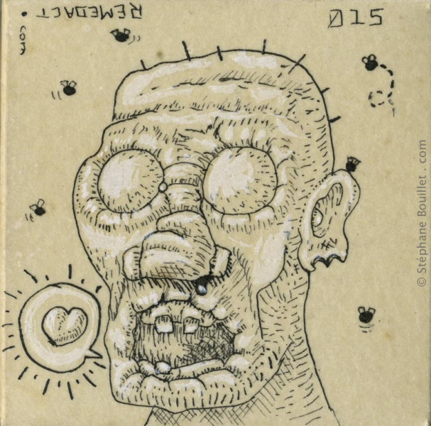 Par S. BOUILLET, 23 mai, 2013 Publié dans Illustration Volume Créé avec Encre de Chine Plume Peinture acrylique Carré (± 8 x 8 cm) Boite Le Dauphin Boite à fromage Un zombie entouré de mouches déclare son amour Voir plus de Amour Halloween Monstre Mort Mouche Zombie Illustration jeunesse