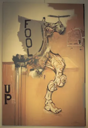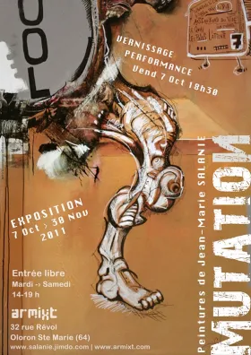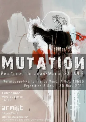 Jean-Marie Salanié Graphisme Affiche de l'exposition de peintures Mutation(s) de Jean-Marie Salanié. Journal de bord d'une personne subissant les désordres et dommages dues aux effets radioactifs.