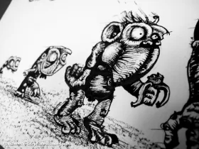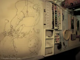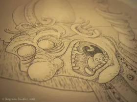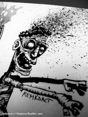 Affiche et Flyer de l'exposition "Trick or Treat", illustrations de Stéphane Bouillet sur le thème d'Halloween, et présentation du projet Sasabudi, Same Same But Different, vidéo en Time Lapse d'un au