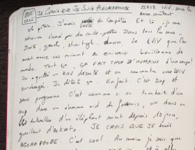 Je crois que je suis agoraphobe Illustration Ecriture Sketchbook analytique. Association de textes et de dessins les illustrant.