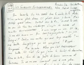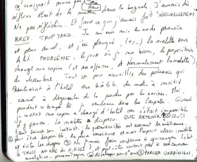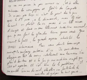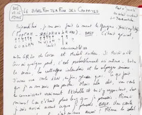 Le barefooter fou des Carpates Illustration Ecriture Sketchbook analytique. Association de textes et de dessins les illustrant.