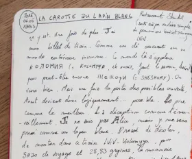 La carotte du lapin blanc Illustration Ecriture Sketchbook analytique. Association de textes et de dessins les illustrant.