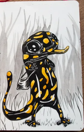 Une boite de sardines sur les routes carpatiennes Illustration Ecriture Sketchbook analytique. Association de textes et de dessins les illustrant.