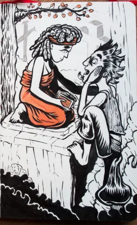 La guerre fratricide Illustration Ecriture Sketchbook analytique. Association de textes et de dessins les illustrant.
