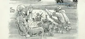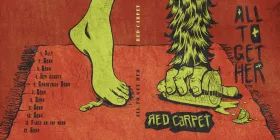 Un pied de gorille / singe tien un verre vide sur un tapis rouge, alors qu'un pied nu écrase une cigarette