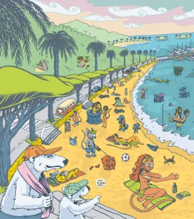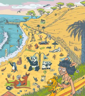 Apéro nucléaire sur Mars Illustration Spectacle nucléaire terrien vu depuis la planète Mars, lors d'un apéro festif.