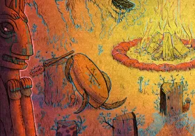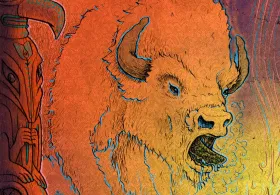 Cérémonie chamanique & bison (couleur) Illustration Version couleur (Clip Studio Paint) de l'illustration originale "Cérémonie chamanique de ré-ensemencement énergétique en présence de l'esprit Bison".