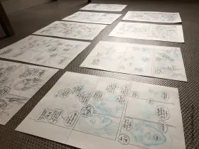 Encrage des cadres de cases Bande dessinée & Manga L’étape du jour et de tracer les cadres des cases à la règle et à la plume Tama. C’est assez rébarbatif et on a vite fait de baver? Comment éviter de baver ?