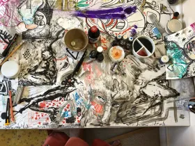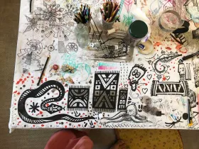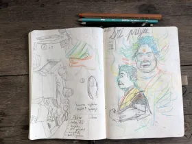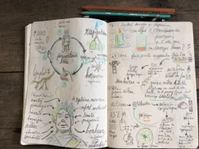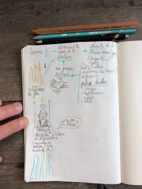 Mata Sri Priya a donné une conférence à Oloron Sainte Marie le 6 septembre. J'en ai profité pour tester le sketchnote sur mon tout nouveau sketchbook Leuchtturm 1917.