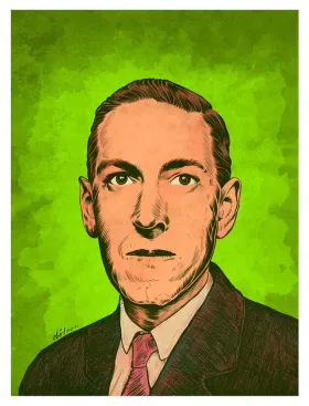 Howard Phillips Lovecraft Illustration Illustration du portrait de l'écrivain fantastique Howard Phillips-Lovecraft en couleur, noir et blanc.