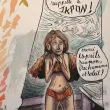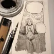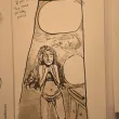 Je suis assez content de l'encrage final de ce chapitre de Shaman mais il me parait un peu fade : normal, j'ai fait l'encrage sans vraiment savoir si j'allais y rajouter de la couleur, du gris, ou rien du tout ! Il manque donc logiquement des couleurs aquarelle, ou des lavis de gris, ou simplement du noir pur en aplat ou en lignes pour donner du volume, mettre en avant des éléments etc.