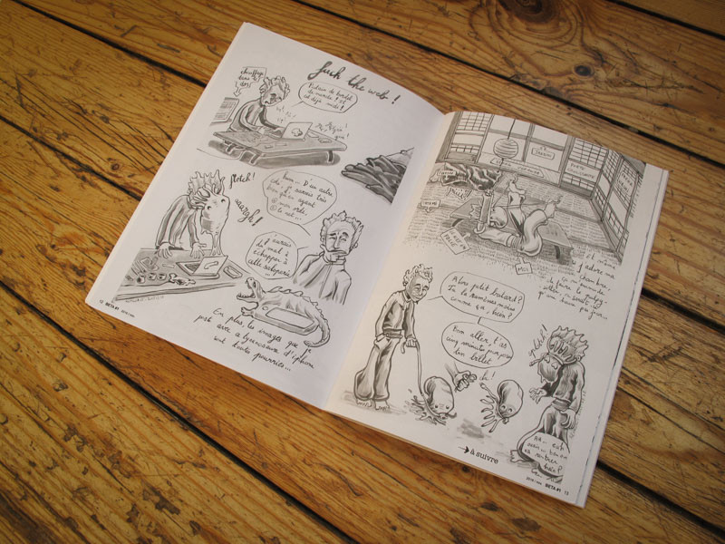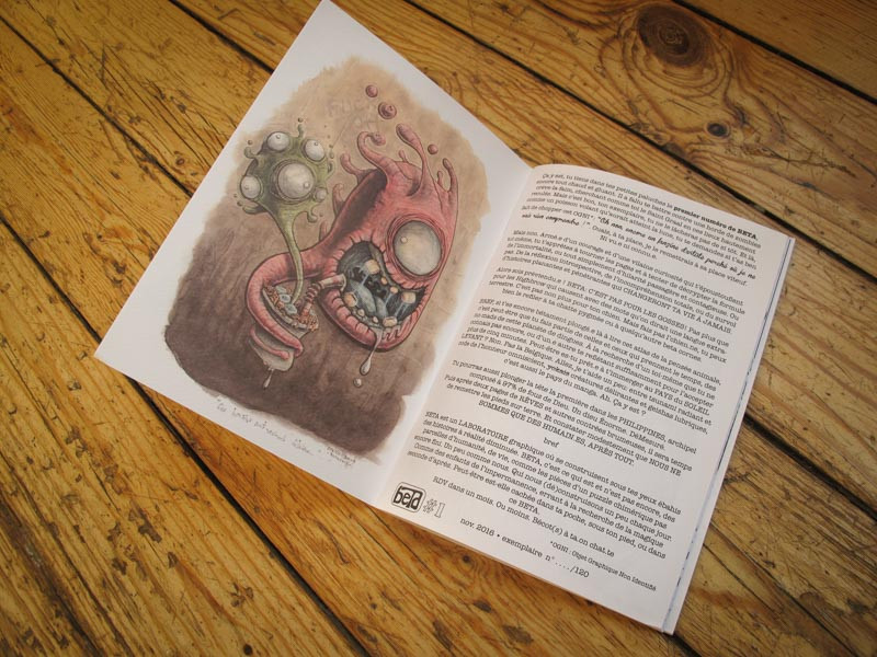 Beta#1 est sorti le 31 octobre ! Encore tout chaud et gluant comme il faut ! 48 pages au format A5 - couverture couleur 300gr. - intérieur noir et blanc en papier recyclé - Édition limitée à 120 exemplaires numérotés signés.