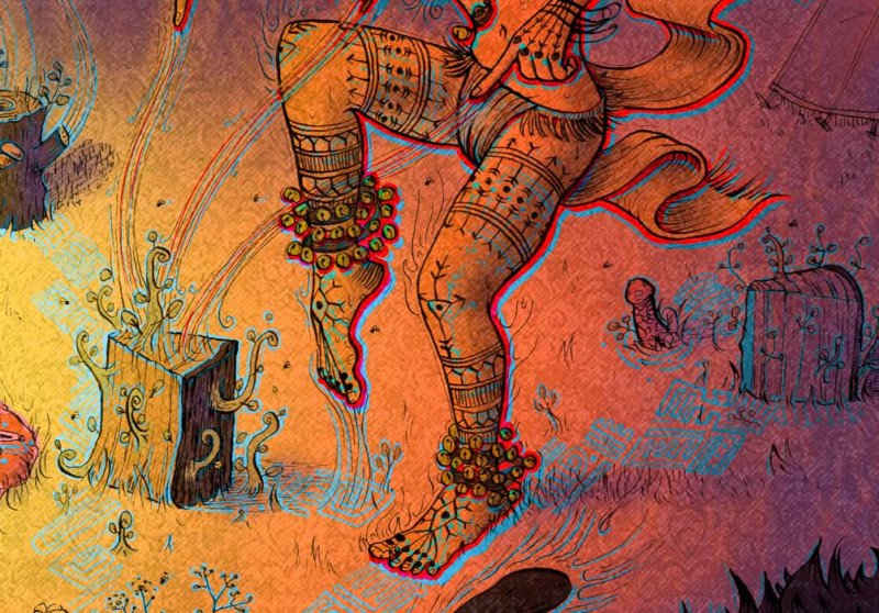 Version couleur (Clip Studio Paint) de l'illustration originale "Cérémonie chamanique de ré-ensemencement énergétique en présence de l'esprit Bison".