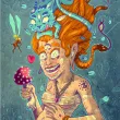 Une luciole démone regarde le spectacle. Peut-être est elle qui lui a chuchoter de croquer le champignon afin qu'elle découvre une autre vision de la réalité ? Les autres mondes…