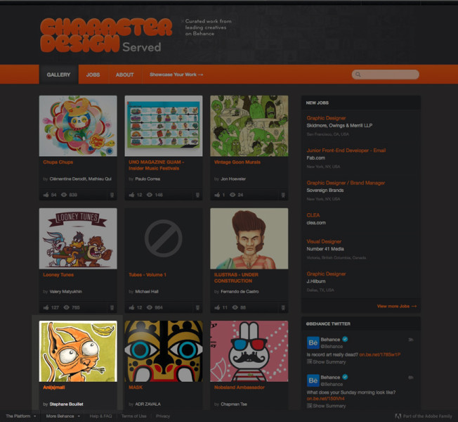 Character Design Served features top work in categories such as cartooning and character design.