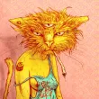 Une chatte à trois yeux après la pluie et un T-shirt Shut the fuck up (ferme ta gueule), essayant de fumer une cigarette mouillée
