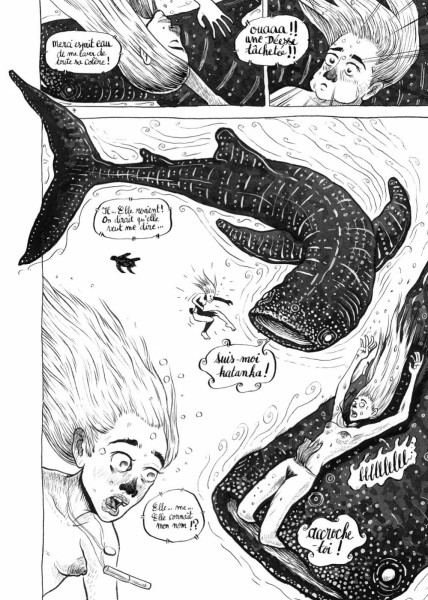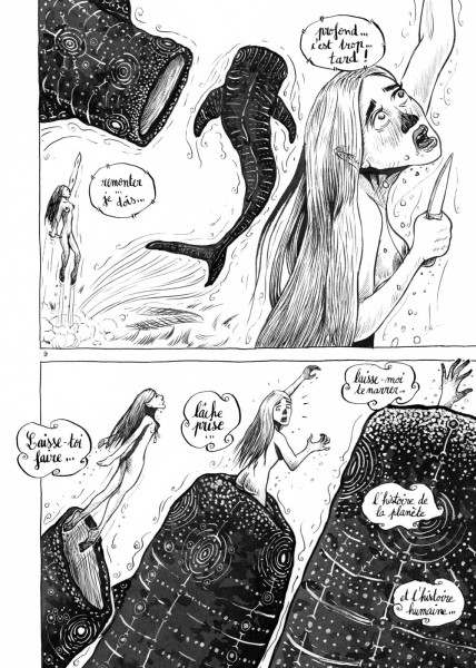 Elle rencontre ensuite un requin baleine et sauve sn petit. Le requin l'avale et lui transmet l'histoire de son peuple requin baleine, tout en lui donnant le message suivant : votre peuple humain doit changer sinon il va périr.
