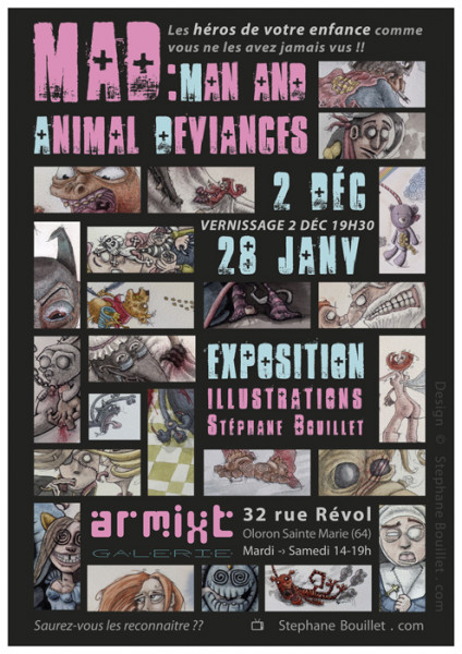 - quelques mètres plus haut, Stéphane Bouillet expose ses illustrations de MAD (Man and Animal Deviances), chez Armixt, 32 rue Révol,