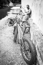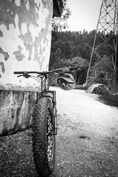 - le fatbike, c'est rigolo : fini donc de s'emmerder le cul sur la selle. Enfin bon, si t'as la condition physique d'une moule après le passage de l'Erika, tu risques quand même de te faire un peu chier en montée, mais sinon tu trouveras toujours un petit rebord où rebondir, ou une fleur à humecter. En tous les cas, le fatbike file la banane et on se retrouve comme des gosses avec les vélos aux gros pneus de notre jeunesse: on s'amuse ! Bon, faut quand même pas oublier qu'on peut aussi se vautrer et que la pression des pneus doit être rigoureuse en fonction du terrain, de ton poids et de ta manière de rouler... Mais bon, globalement, ça décoince les zigomatiques !