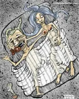 Ces planches ont traîné en longueur puisqu'après avoir fait le scénario, je me suis cassé l'os scaphoïde de la main droite (celle qui dessine), et on m'a ré-inséré les ligaments scapho-lunaire et immobilisé le poignet avec 2 broches et une attelle. C'est donc avec une appréhension particulière que j'ai dessiné l'amputation de mon personnage.